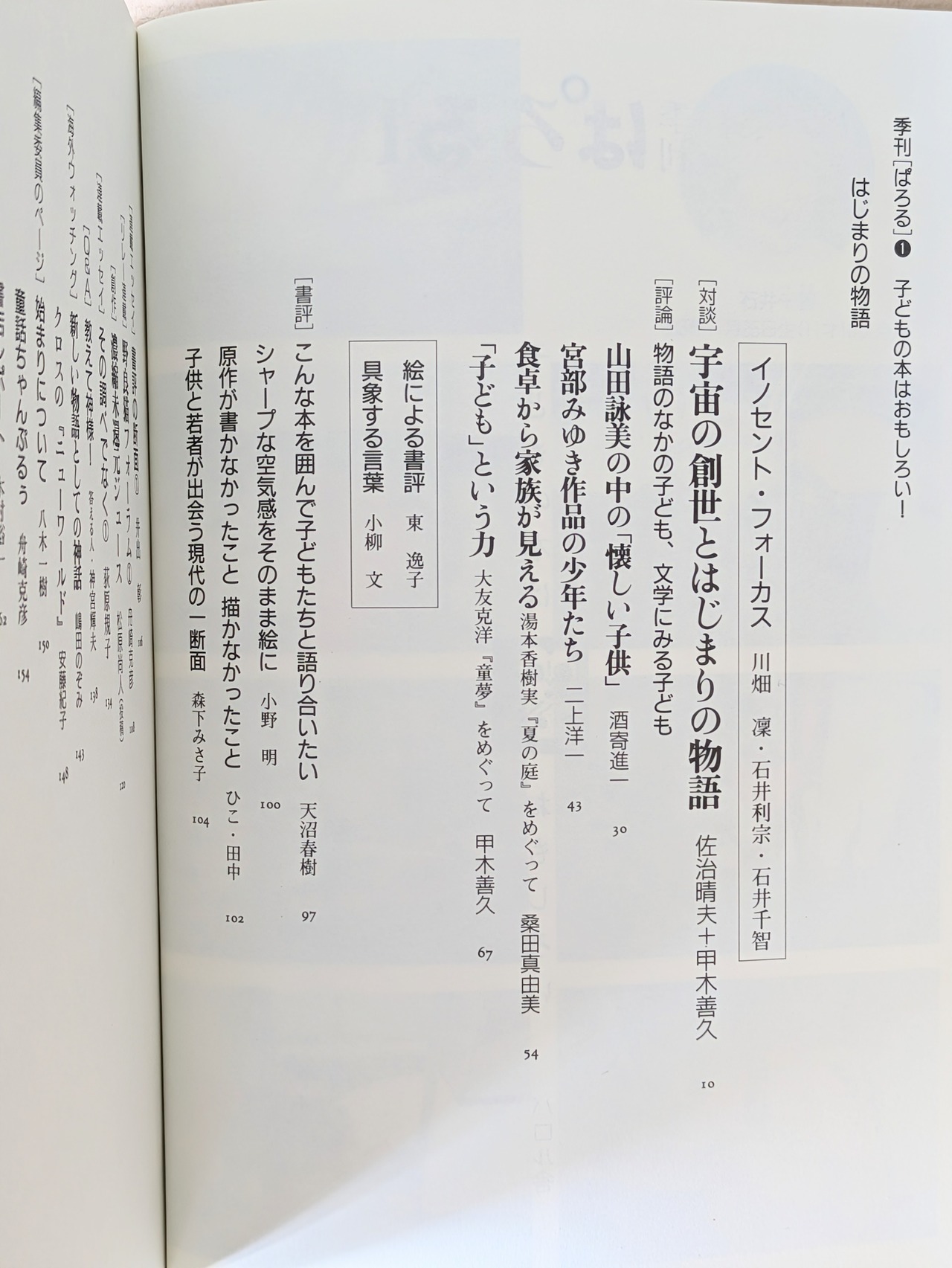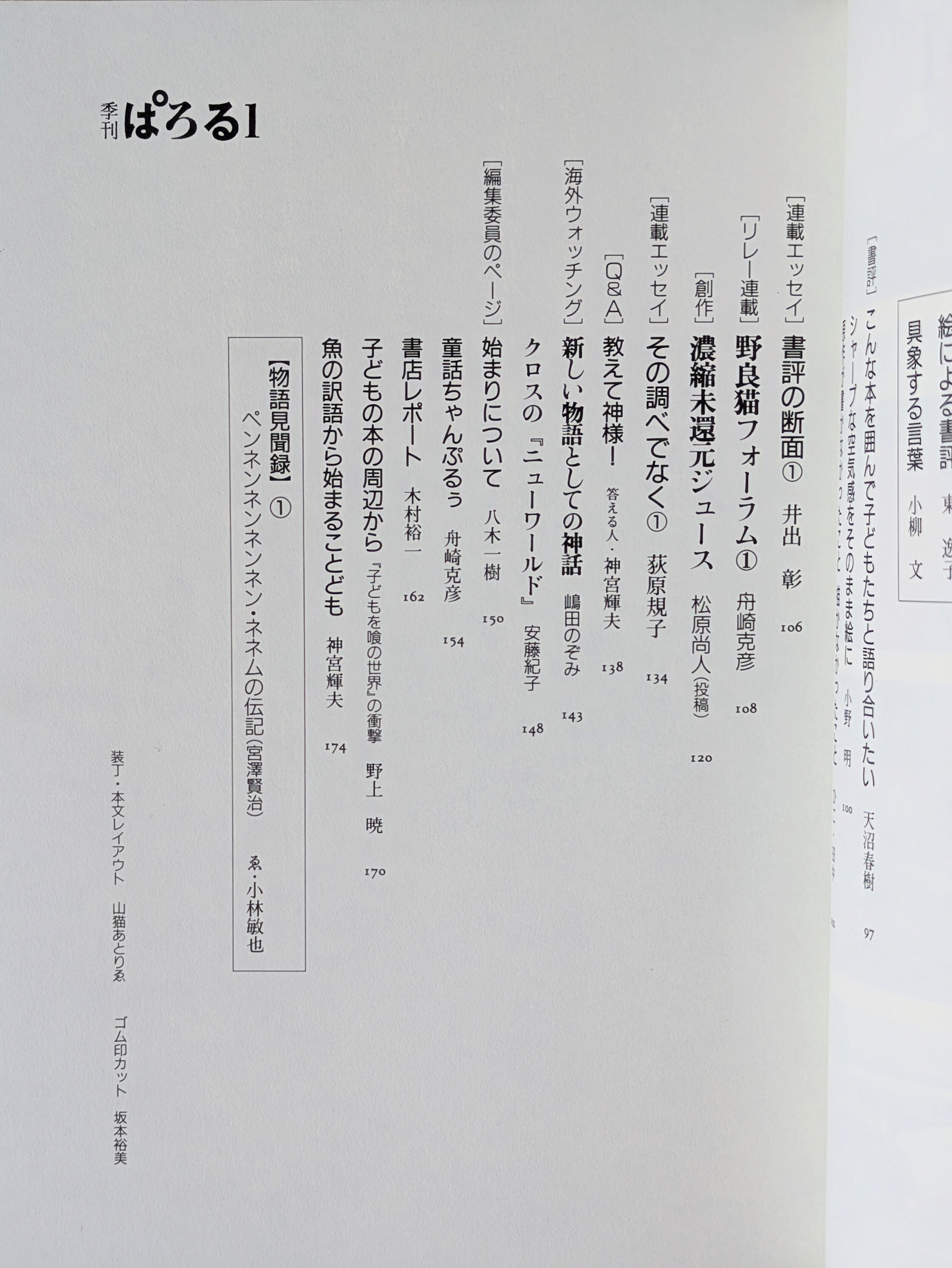 「子どもの本はおもしろい!」を旗印に創刊した文芸誌。対談、評論、書評、エッセイ、創作、座談会など、まだまだ熟成にはほど遠いが、今までにないものを作ろうという心意気を感じる。