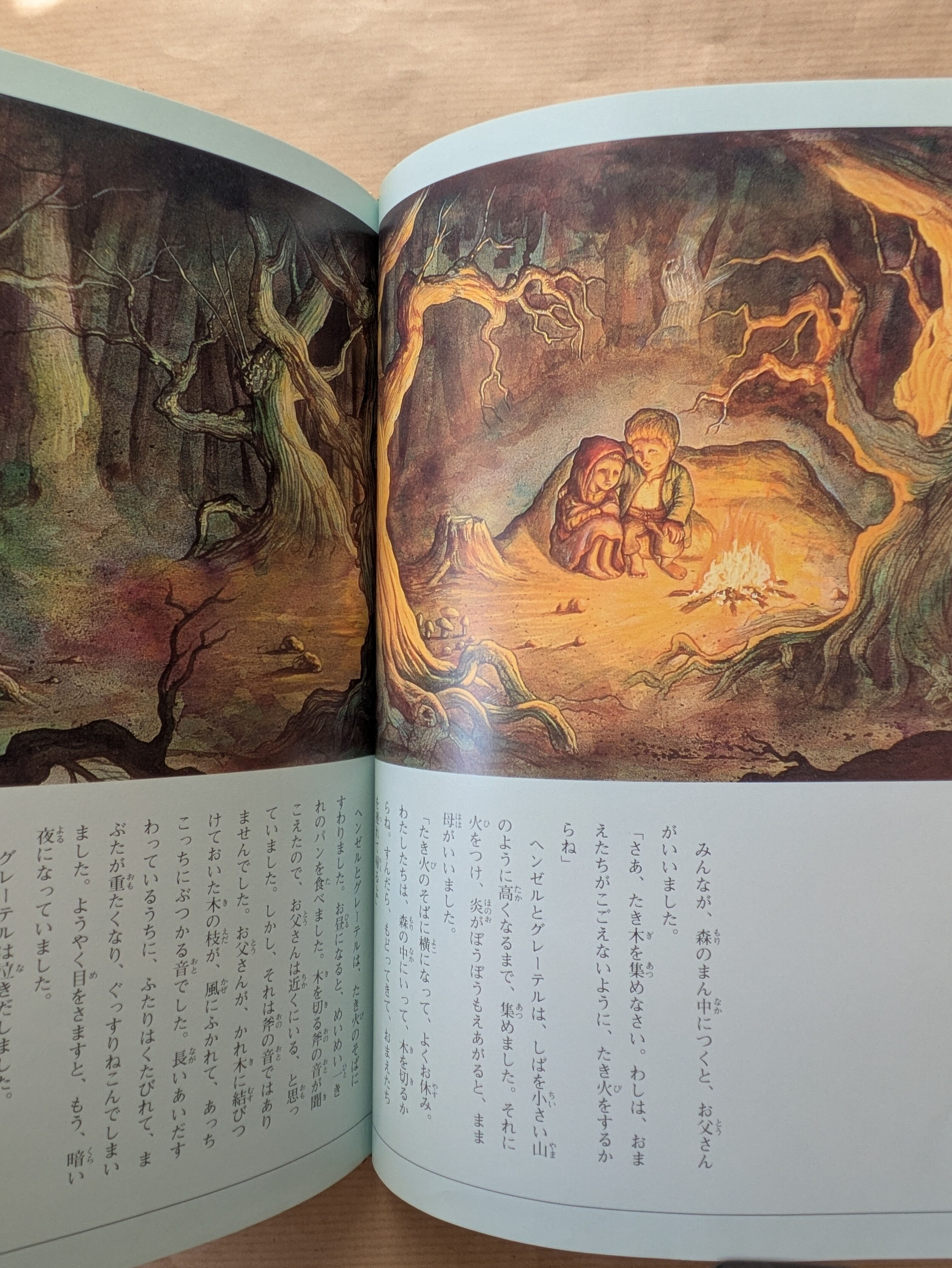 このグリム作品では、主人公の兄妹が痩せこけて薄幸そうな表情なところがリアルである。継母が鬼の形相だと思ったらもっと怖い顔の魔女が登場し、兄妹が生きるために必死の行動をするのは多くの方がご存知だろう。