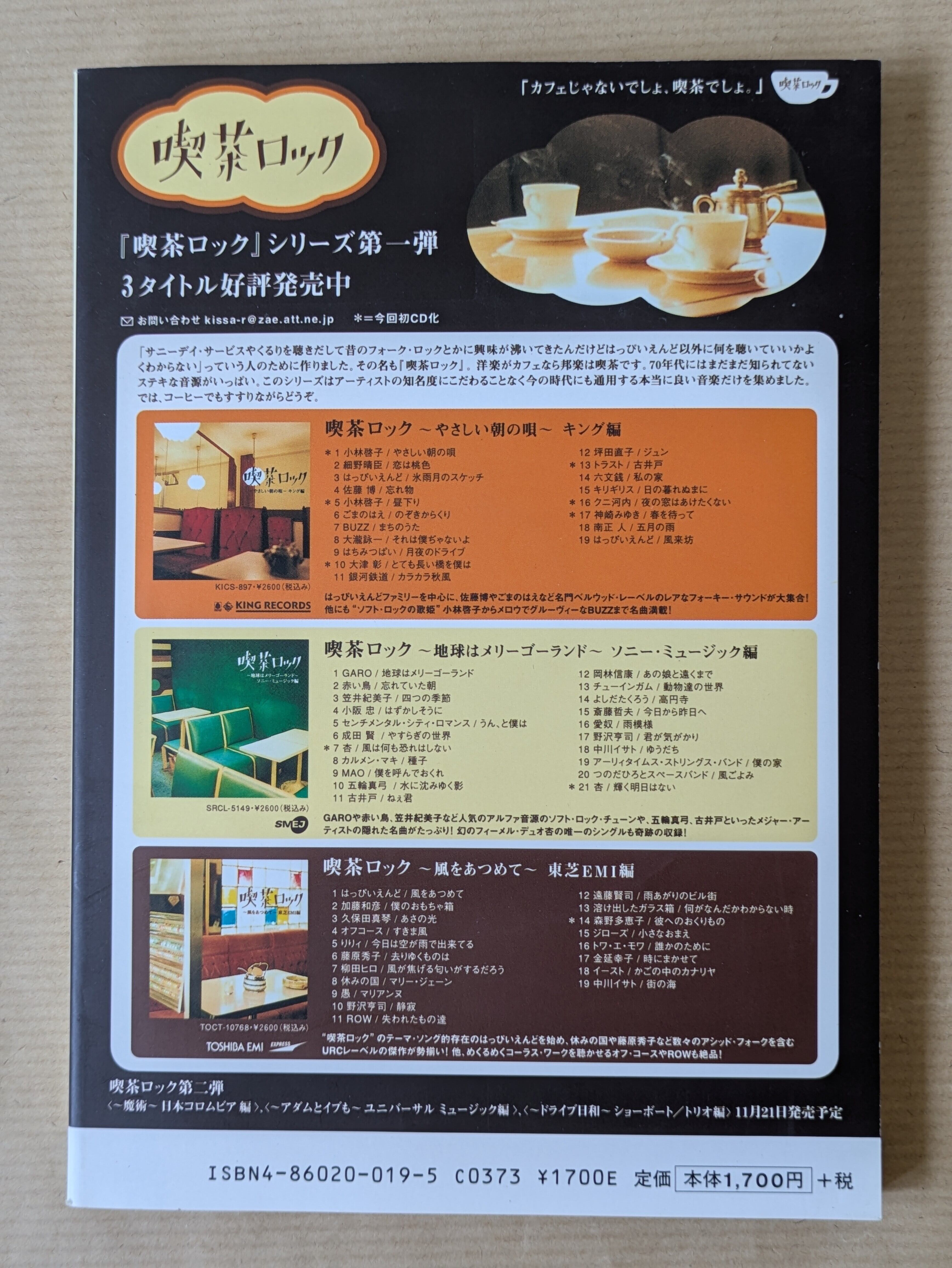 2000年創刊、2006年全25号で休刊した『ロック画報』の第6号。その後も復刊・続刊があった。日本のロックバンドを取り上げ、はっぴいえんど、はちみつぱい、RCサクセション、めんたいビート、フォークミュージックなどが特集された。ディープな内容と付録CDが目玉である。