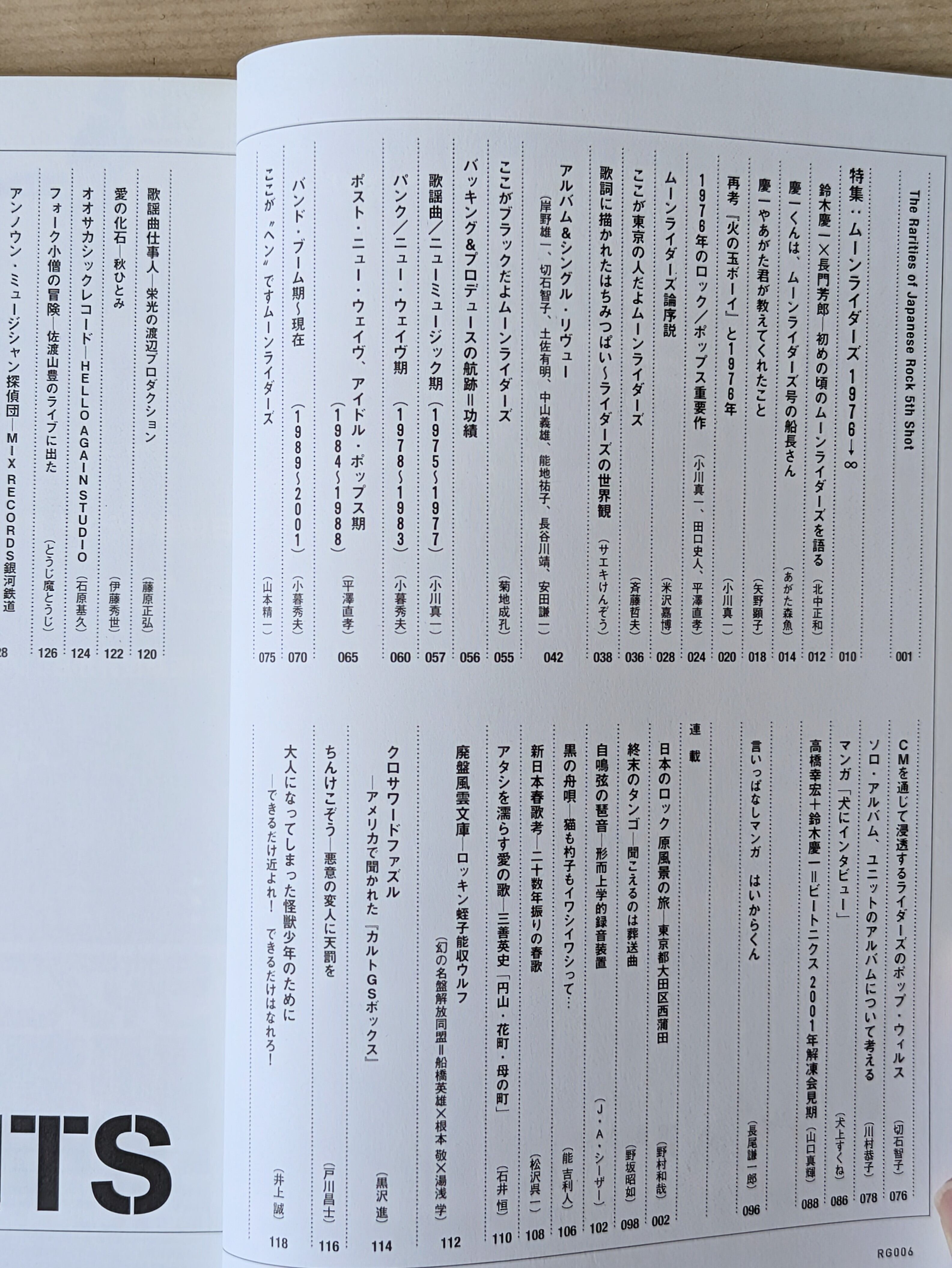 本号では不定期活動が続いているムーンライダーズを特集している。近年オリジナルメンバー2人が逝去したが今も根強いファンがいるバンドである。